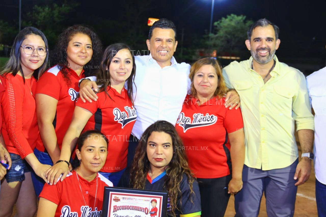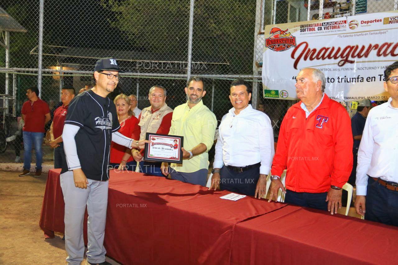 Acompañados de directivos de la Liga Universitaria Municipal de Softbol, premiaron a equipos y jugadores campeones de bateo de la temporada 2022 e inauguraron el nuevo torneo en el que desearon suerte a los softbolistas de los más de 40 equipo participantes en la categoría femenil y varonil.